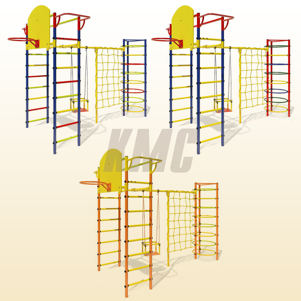 Комплектация: турник, кольцо баскетбольное, качели, канатный лаз