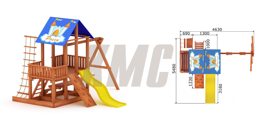 Комплектация: игровая башня с лестницей, горка, качели 2 шт., песочница, скалодром, веревочная лестница, скамья 2 шт., столРазмер упаковки: 1 место 2,80 х 0,24 х 0,14 м